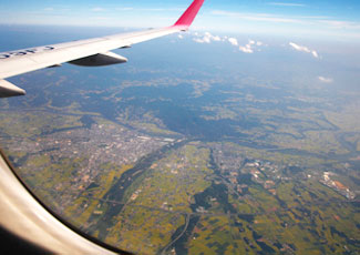 飛び立ち、目指すは世界遺産